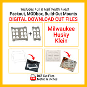 El paquete CNC todo en uno que todo aficionado al bricolaje y fabricante profesional necesita. Consigue placas de montaje perfectas para Milwaukee Packout, DeWalt ToughSystem 2.0, Husky Build-Out y Klein MODbox, todo en una sola descarga.